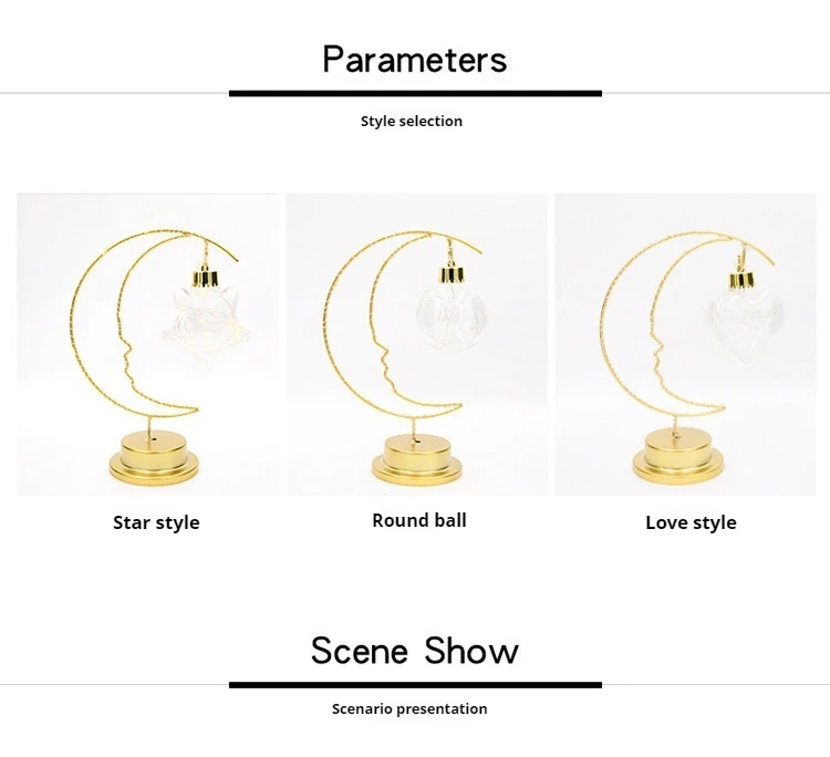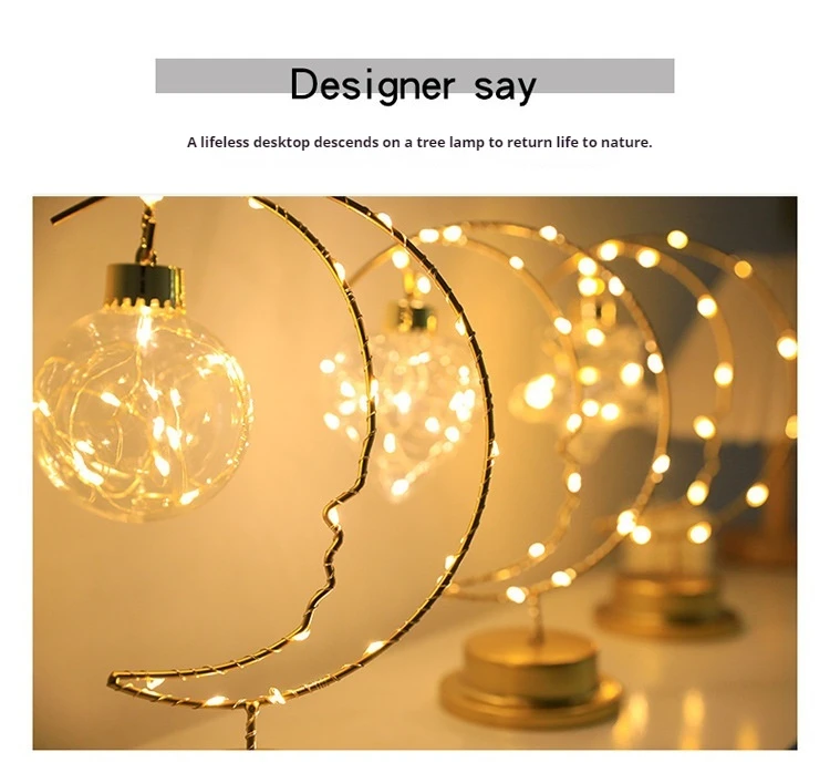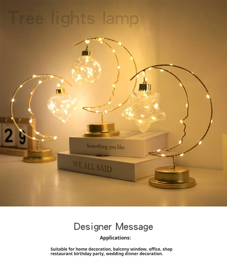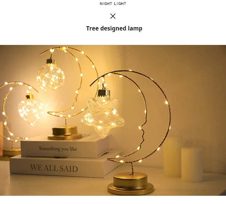 2025 Home Decoration Star Designed LED Light Moon Shape Indoor Ornament Small LED Night Lamp Heart Iron Material for gift
